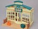 Obchod s potravinami s tehlovou stenou a zelenou strechou z radu Sylvanian Families.