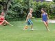 Plastová húsenica po napojenie na záhradnú hadicu okolo seba rozstrekuje vodu.