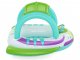 Krásny farebný detský čln v tvare kozmickej lode so strieškou, ktorá ochráni dieťa pred slnečnými lúčmi.