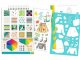 Viac ako 120 šablón a nálepiek, 14 inšpiratívnych stránok, výkresovej technológie, 30 farebných stránok.
