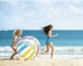 Veľká nafukovacia lopta do vody vo veselých farbách, veľkosť 107 cm (polovica obvodu lopty), hrúbka materiálu 0,23 mm.