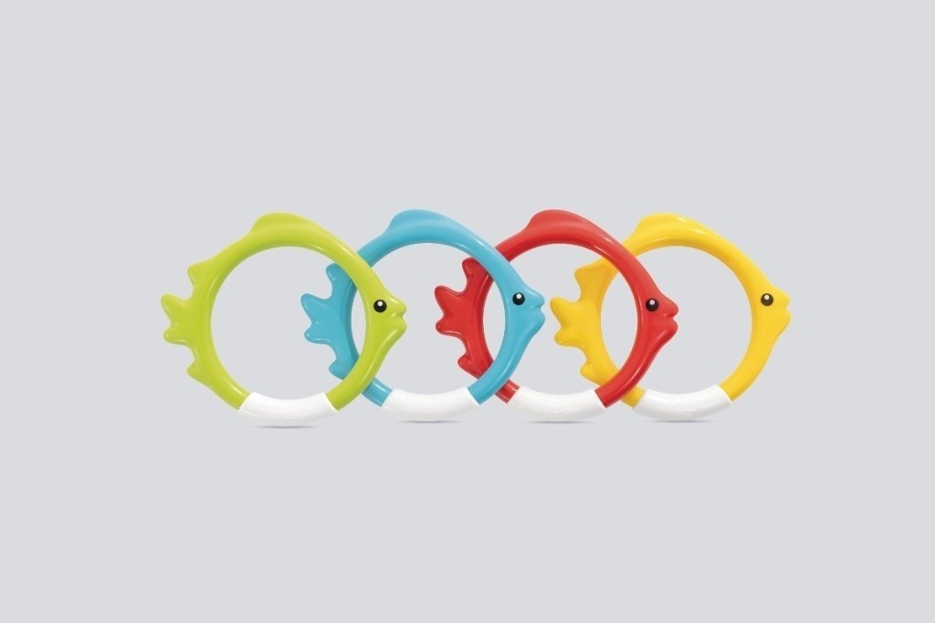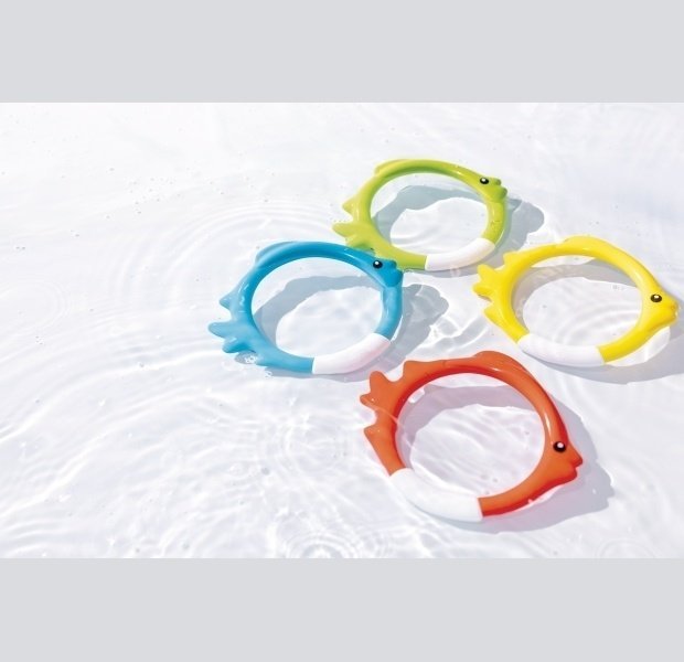 Súčasťou balenia sú 4 zábavné potápačské krúžky v dizajne rýb v rôznych farbách.