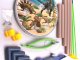 V balení okrúhly plastový terč s obrázkami dinosaurov.
