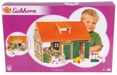 Veľká drevená konská farma s príslušenstvom.