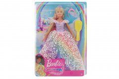 Barbie® Modelka - šaty s modrými a žltými kvetmi.